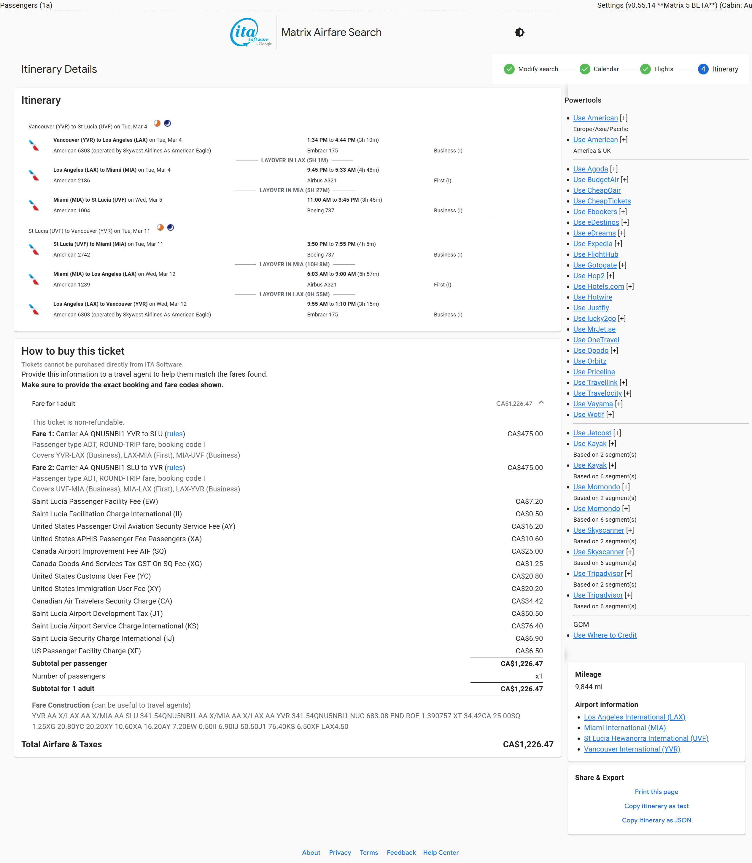 YVR-LAX-MIA-UVF-MIA-LAX-YVR