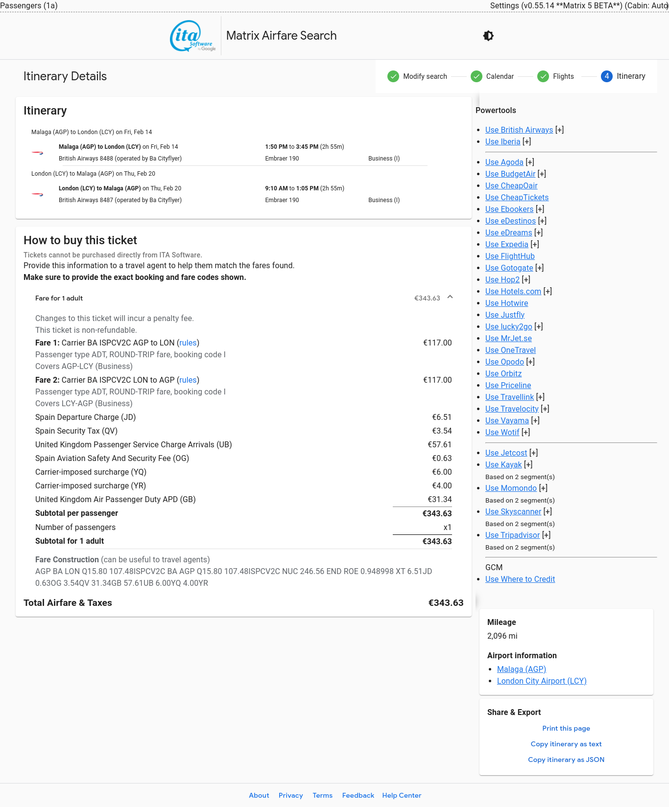 BRITISH AIRWAYS BUSINESS RESTRICTED FARE BETWEEN UNITED KING