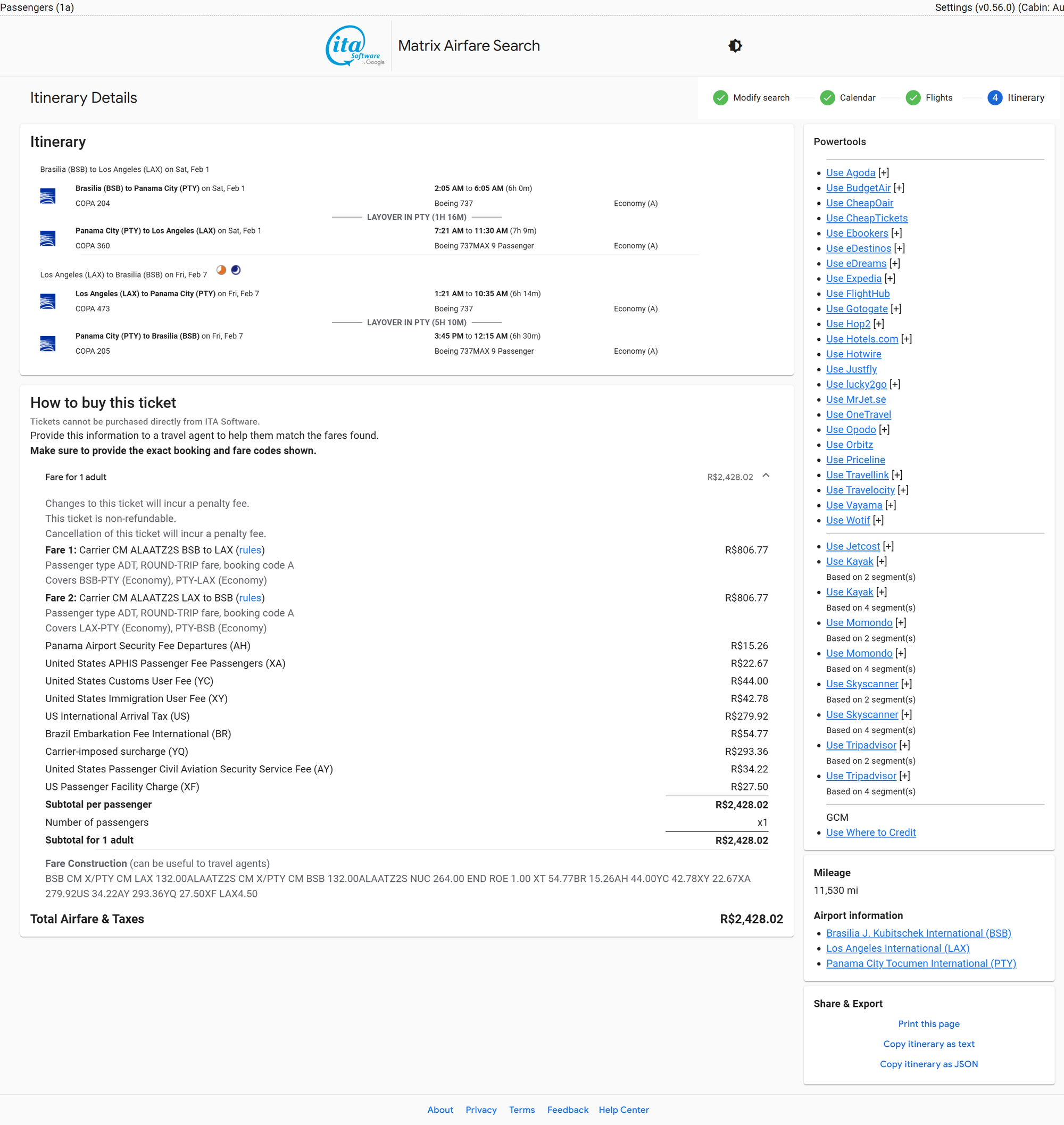 CM - Brasilia (BSB) to Los Angeles (LAX) - 2135 BRL / $318 USD Roundtrip - Economy