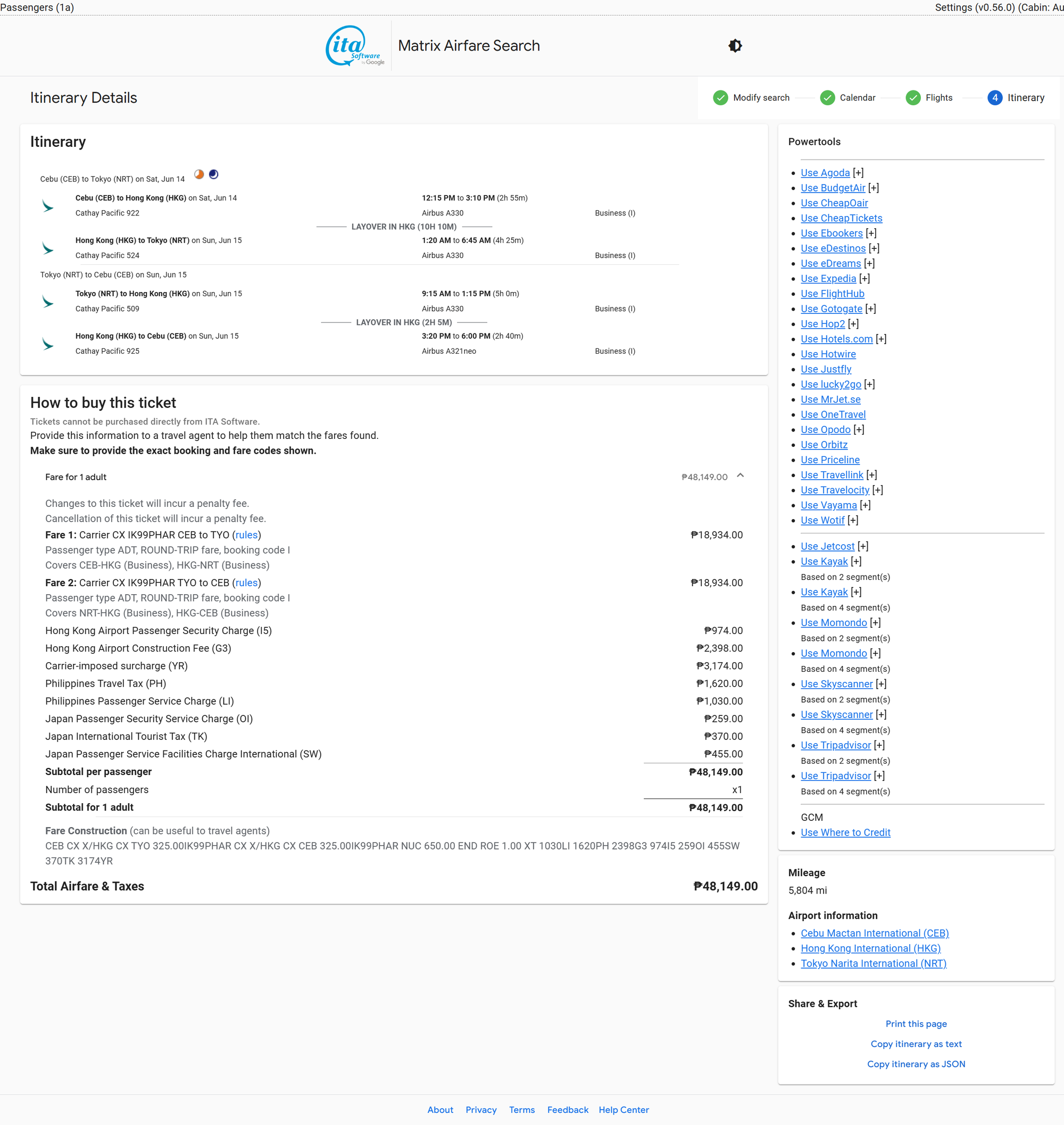 CX - Cebu (CEB) to Tokyo (NRT) - 48149 PHP / $807 USD Roundtrip - Business