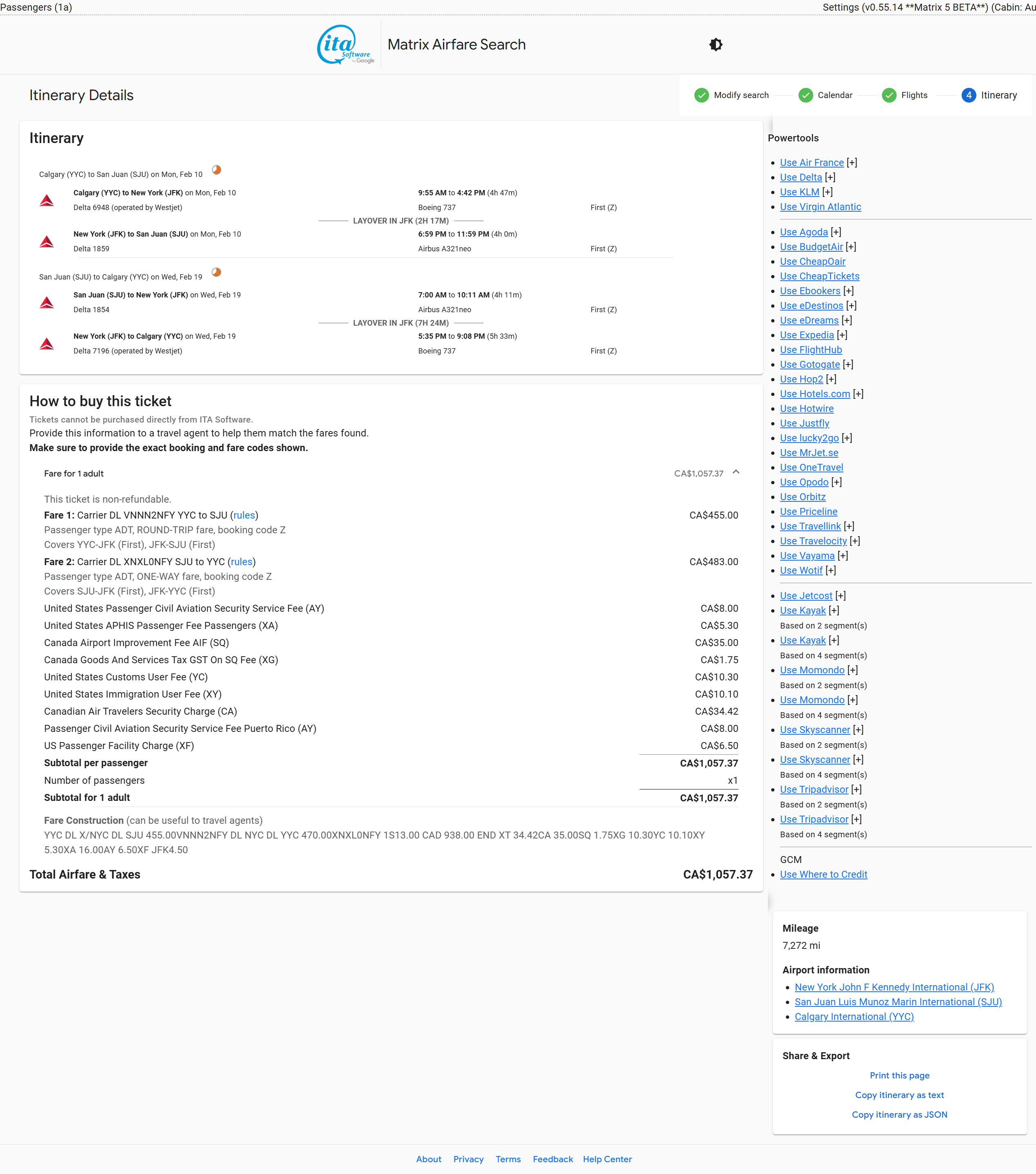 YYC-JFK-SJU-JFK-YYC