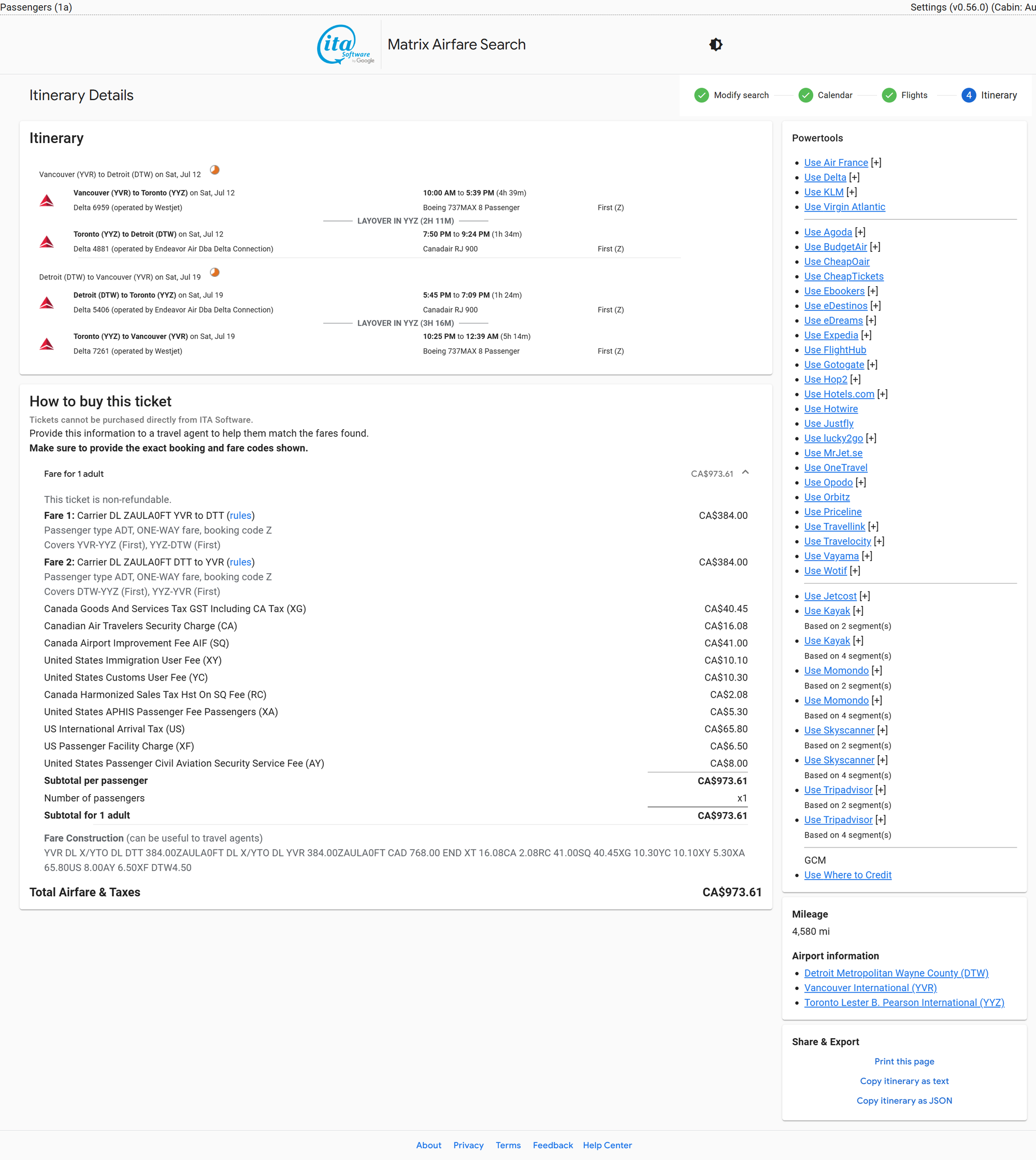 DL/WS - Vancouver (YVR) to Detroit (DTW) - 956 CAD / $665 USD Roundtrip - Domestic First