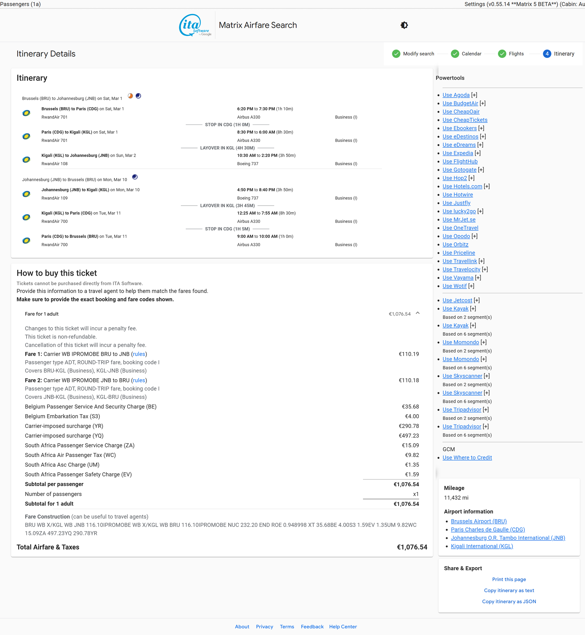 Error Fare? - WB - Brussels (BRU) to Johannesburg (JNB) - 1077 EUR / $1105 USD Roundtrip - Business