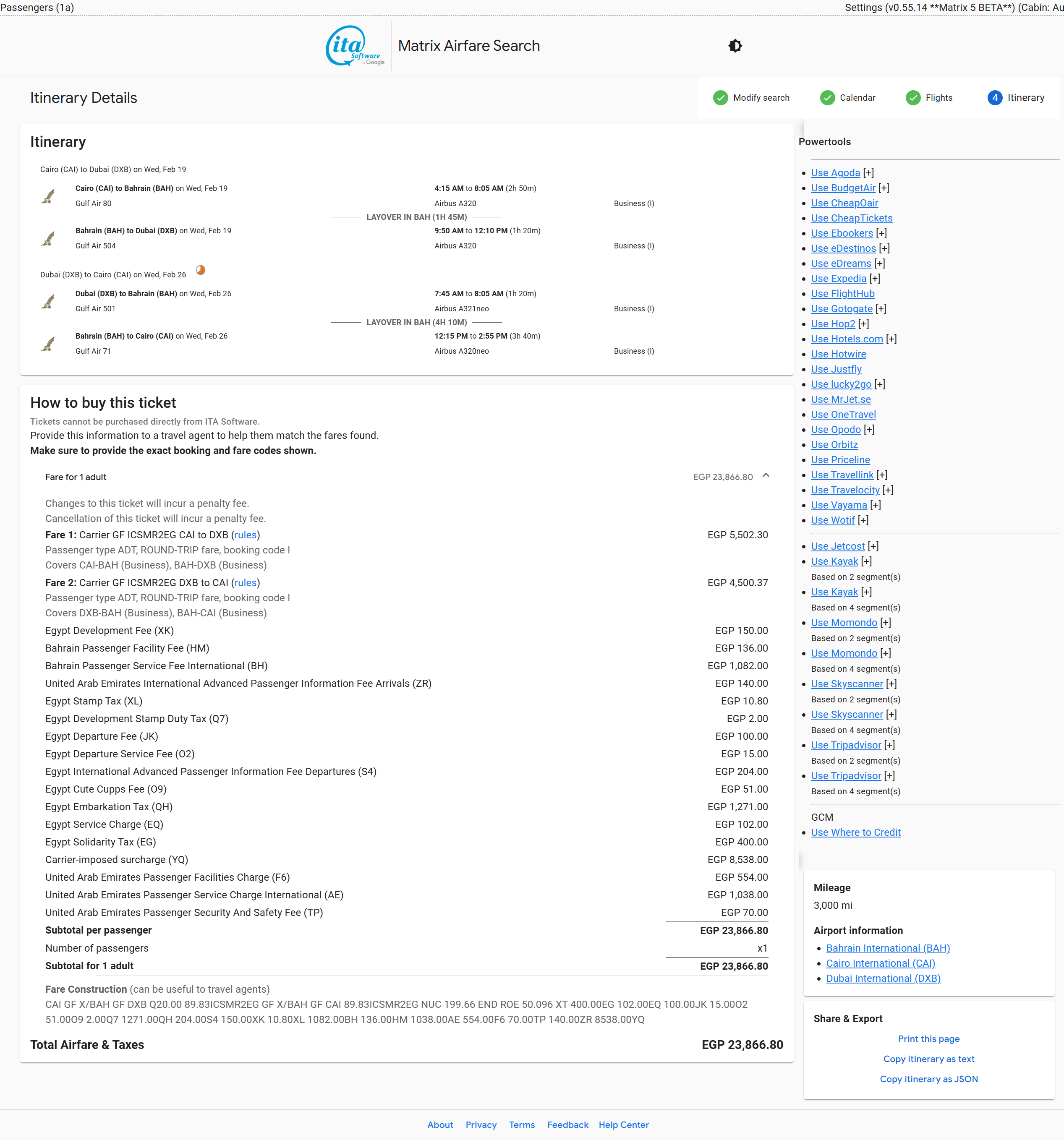 GF - Cairo (CAI) to Dubai (DXB) - 23867 EGP / $471 USD Roundtrip - Business