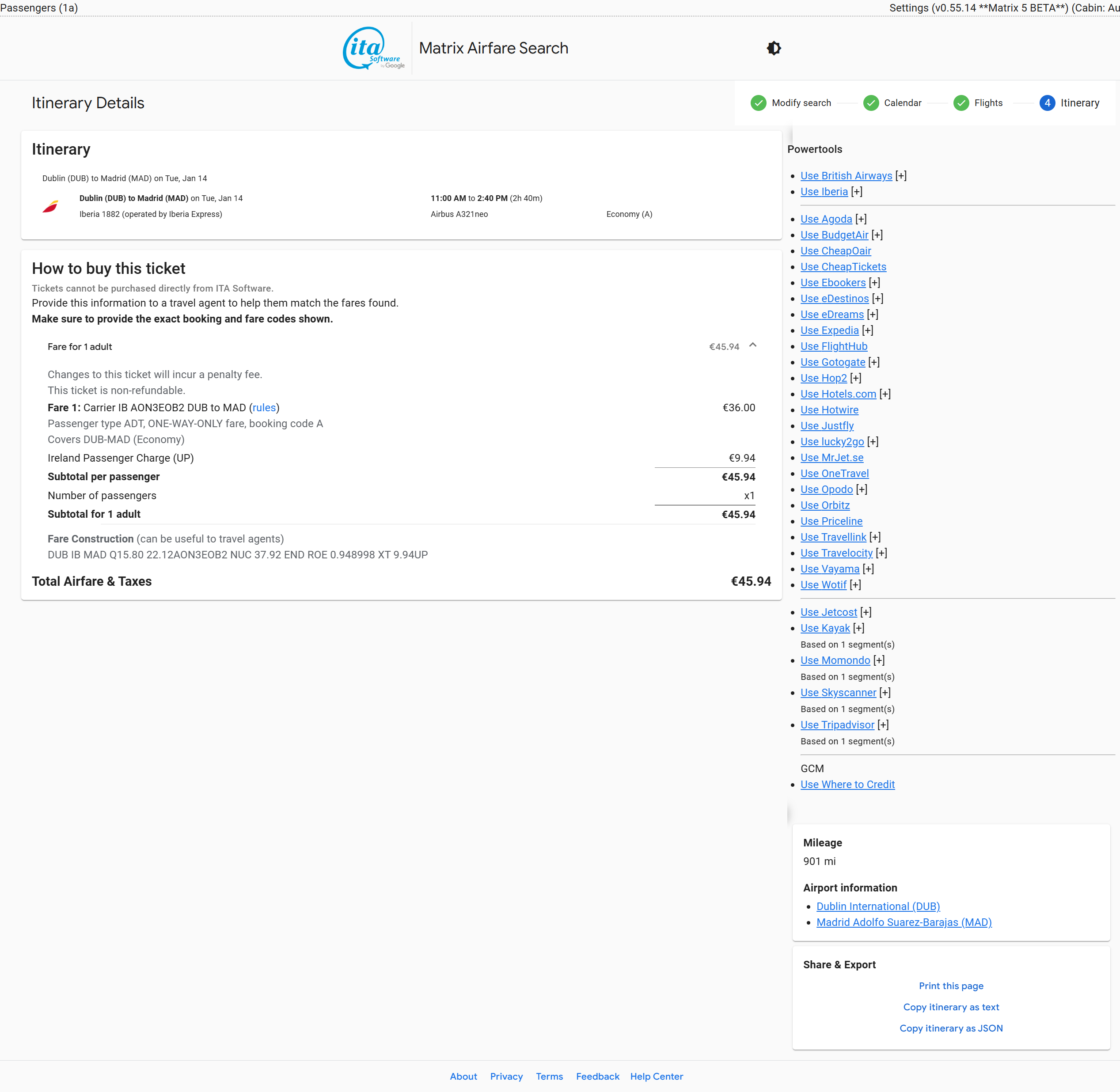 IB - Dublin (DUB) to Madrid (MAD) - 21 EUR / $22 USD One-Way or $58 Roundtrip - Economy