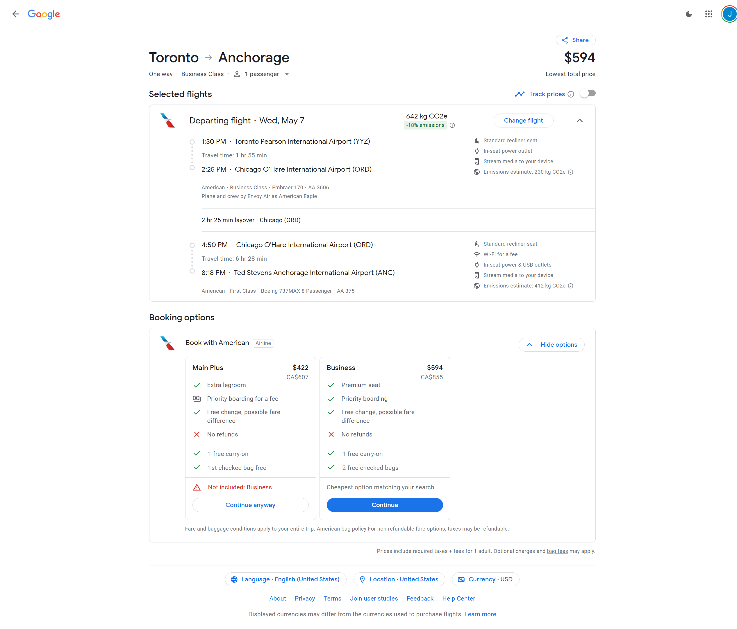 May 7, 2025 - Toronto, Canada (YYZ) to Anchorage, Alaska (ANC) - 855 CAD / $593 USD One-Way